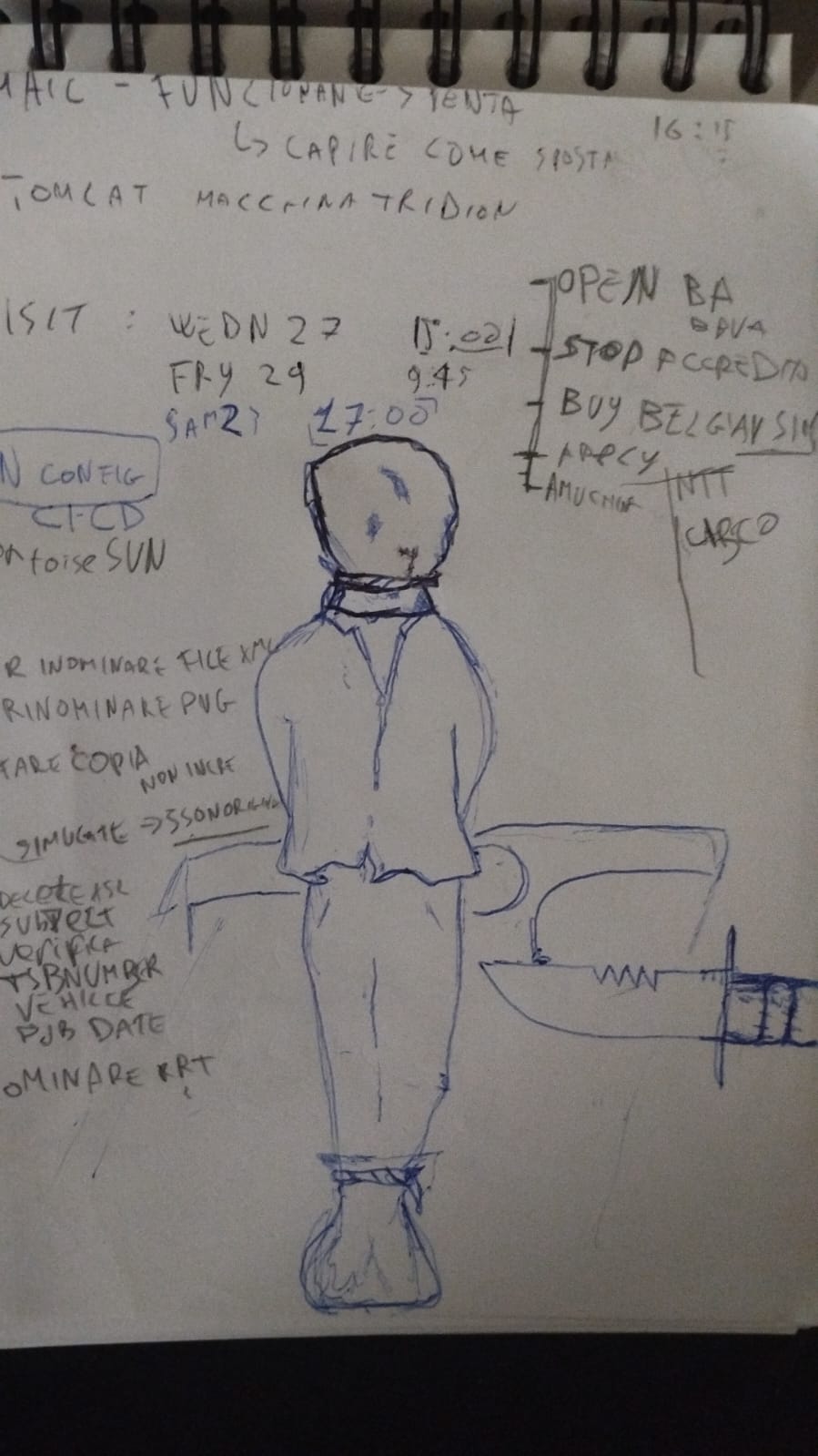 Il cielo cremisi circonda la mia faccia, uno sguardo folle e la bavetta all’ angolo delle labbra. Un cappuccio di sacco ruvido gli scivola sulla testa e tinge il campo di nero necrosi. Lo carico su una spalla tagliandogli il respiro con un colpo sul diaframma. A ogni passo il suo fiato arranca. Ha smesso di dimenarsi ma trema, d’altronde è legato mani e piedi e la corda stretta alle caviglie gli impedisce la circolazione che prova a riattivare strofinandole l’una con l’altra. Intanto si alza un vento che fa rabbrividire le lacrime. Lo poggio supino su una superficie dura. Stringo i nodi al cappuccio e alle caviglie e lo spingo, una caduta di qualche secondo viene fermata dall’ impatto con l’ acqua, si agita preso dalla sorpresa e annaspa cercando di galleggiare ma in fretta il sacchetto che ha in testa si inzuppa e gli rende sempre più difficile l’annaspo. Gli urlo qualcosa ma è troppo spaventato per capire, una corda gli tira le gambe, ormai ha quasi perso i sensi, ma quella corda lo sta trascinando fuori dalla corrente,verso la riva, sul terreno sabbioso e umidiccio gli è ancora difficile respirare per il sacchetto ancora fradicio, un colpo secco gli libera le mani ,con il coltello ancora in mano gli tolgo il sacco dalla testa ,la mia faccia è in un cielo blu notte illuminata, gli occhi pieni di stupore come fossi rinsavito d’un solo colpo secco.